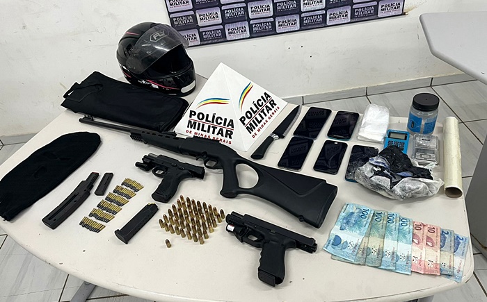 PM apreende no bairro Eldorado armas, munições e veículos furtados após tentativa de homicídio no bairro Bela Vista em Itabira
