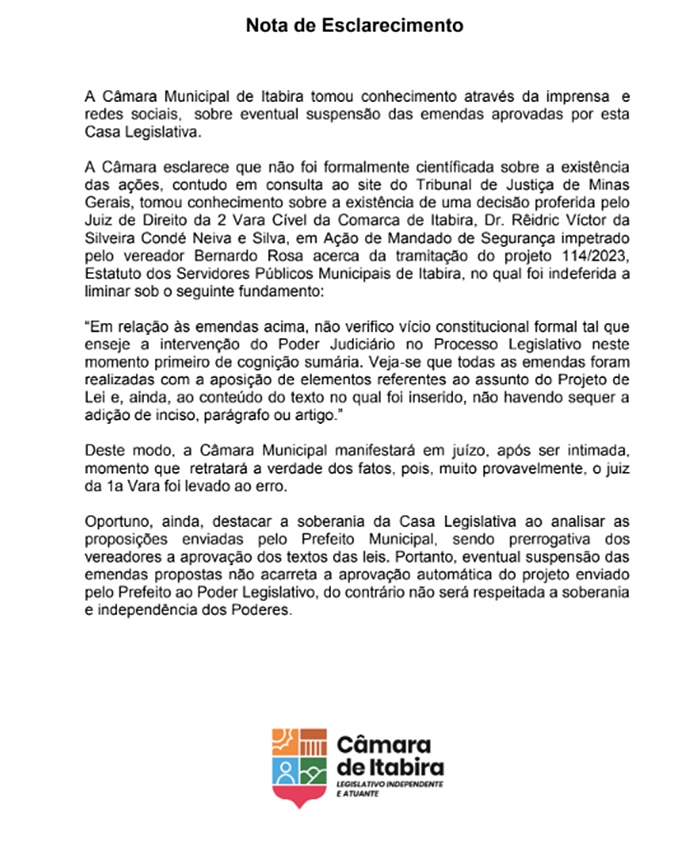Nota de esclarecimentos da Câmara de Itabira 11/03/2024, 19:47 0share Facebook WhatsApp Compartilhar Deixe um comentário Cancelar respostaO seu endereço de email não será publicado. Campos obrigatórios marcados com *Comentário * Nome * Email * Site Guardar o meu nome, email e site neste navegador para a próxima vez que eu comentar.