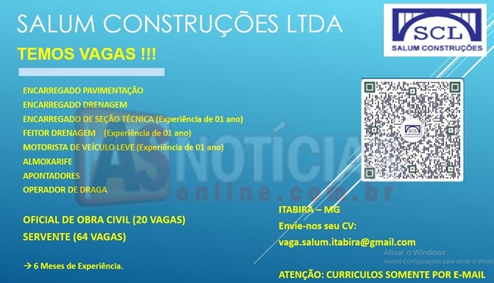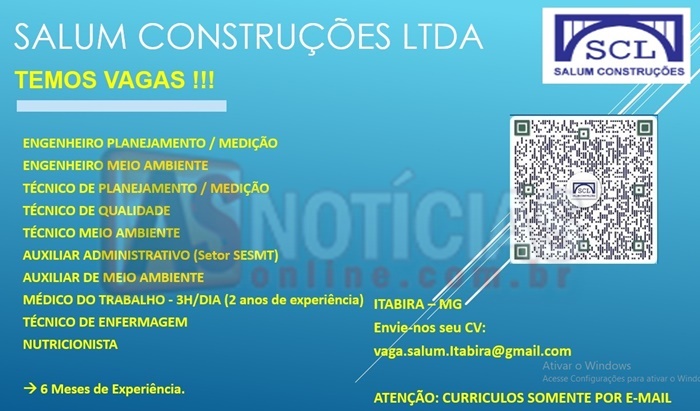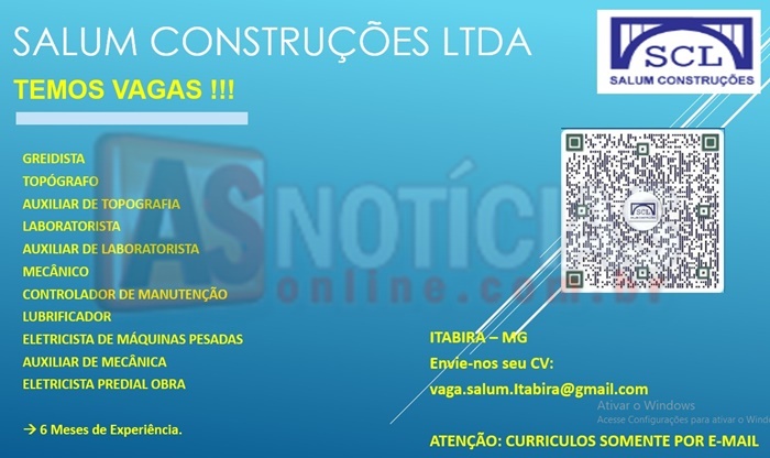 A empresa SALUM CONSTRUÇÕES esta oferencendo varias vagas de emprego 26/03/2024, 10:48 1 Comment 1share Facebook WhatsApp Compartilhar One Comment Leave a Reply Ja trabalhei na mina timbopeba, no projeto da vale Foi uma ótima experiência, e gostaria de fazer parte sempre q a empresa precisar Responder Deixe um comentário Cancelar respostaO seu endereço de email não será publicado. Campos obrigatórios marcados com *Comentário * Nome * Email * Site Guardar o meu nome, email e site neste navegador para a próxima vez que eu comentar.