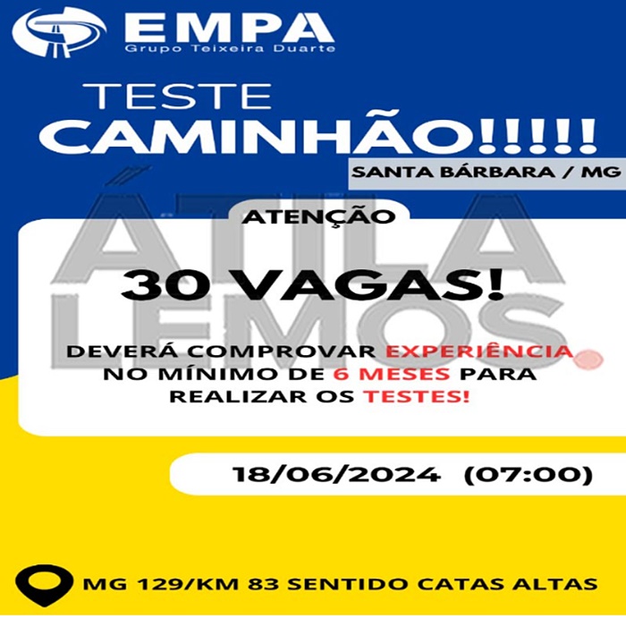 Grupo EMPA oferece 30 VAGAS de motorista em Santa Bárbara 17/06/2024, 10:25 0share Facebook WhatsApp Compartilhar Os interessados devem comparecer no endereço descrito na imagem abaixo. Deixe um comentário Cancelar respostaO seu endereço de email não será publicado. Campos obrigatórios marcados com *Comentário * Nome * Email * Site Guardar o meu nome, email e site neste navegador para a próxima vez que eu comentar.