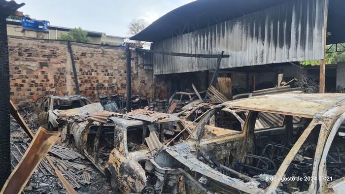 Ao chegarem, os bombeiros confirmaram que o incêndio havia se alastrado para o interior da oficina, mas, felizmente, não houve feridos. O fogo causou danos ao telhado da oficina e também afetou o telhado e a caixa d’água de uma residência vizinha. Aproximadamente 12 veículos foram carbonizados, alguns dos quais ficaram completamente destruídos. Um escritório dentro da oficina também teve o telhado comprometido.
