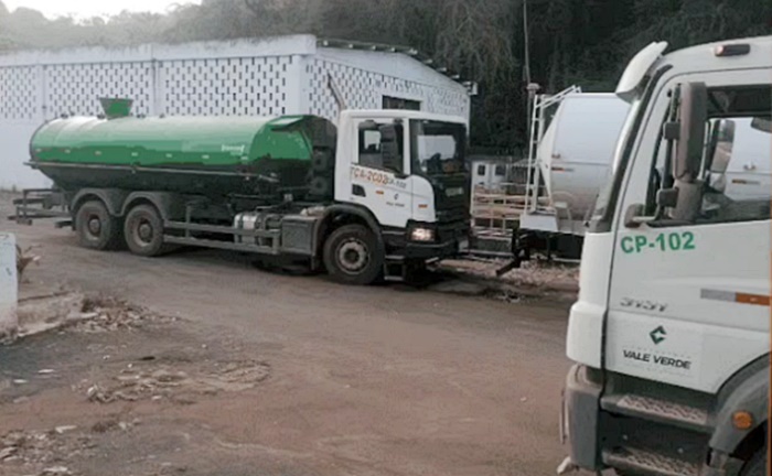 Vazão estimada: caminhões-pipa de 20 m³, cerca de 25 viagens por dia