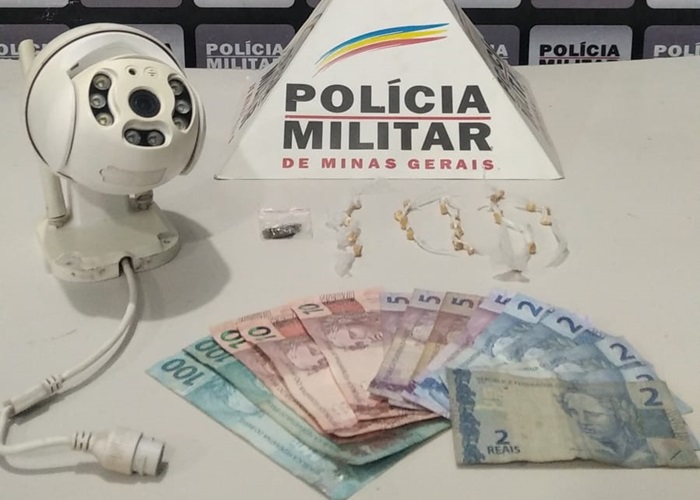 Durante a abordagem, o jovem confessou participação no tráfico e revelou o local onde escondia os entorpecentes. Os militares apreenderam 27 pedras de crack, uma bucha de maconha, R$ 260 em dinheiro, além de uma câmera de segurança e uma fotografia. Parte do dinheiro estava escondida no forro da garagem.