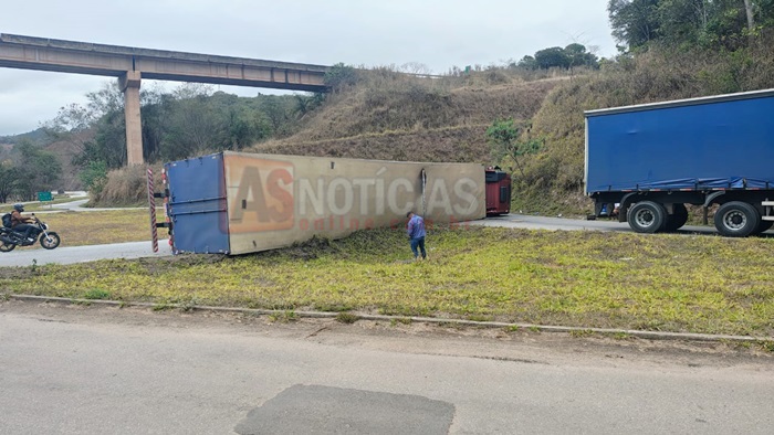 ITABIRA(MG)- Na madrugada desta quarta-feira, 24 de setembro de 2025, por volta das 3h30min, uma carreta carregada com caixas de cerveja tombou na rotatória de acesso da MGC-120 para a MG-129, na localidade do Laboreaux, em Itabira.
