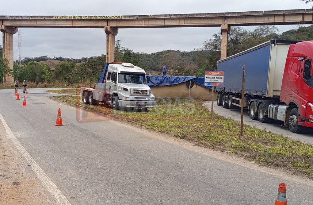 De acordo com as informações, a Polícia Militar Rodoviária (PMRv), foi acionada onde o condutor do veículo, um homem de 29 anos, relatou que seguia em direção à região metropolitana de Belo Horizonte quando, ao contornar a rotatória, ouviu um barulho vindo do eixo traseiro da carreta Volvo FH 500, de cor vermelha e placas de Baixo Guandu (ES). Logo em seguida, o veículo tombou, interditando parcialmente o trânsito no sentido Nova Era.