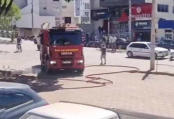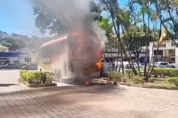 Ônibus pega fogo no Centro de Guanhães, Bombeiros controlam as chamas e evitam maiores danos