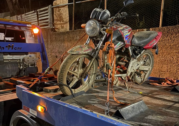 No imóvel investigado, os militares encontraram diversas peças de uma Honda Fan 160, além de uma motocicleta Honda Twister vermelha, ambas com registros de furto. Durante as buscas, também foram localizadas gaiolas contendo oito aves da fauna silvestre, mantidas sem a devida autorização dos órgãos ambientais.