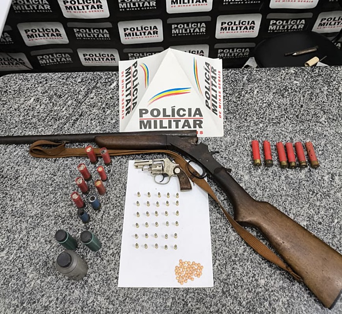 Durante a verificação, os militares encontraram um revólver calibre .22 e dois cartuchos calibre .16 deflagrados. Em continuidade às diligências, as equipes se deslocaram até a residência do menor, onde localizaram uma espingarda calibre 16, além de munições e materiais utilizados para recarga de cartuchos.