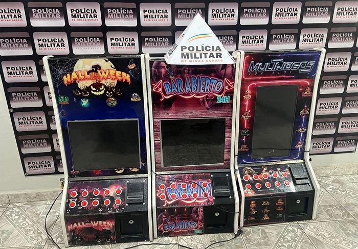 Durante a vistoria, as equipes encontraram três máquinas eletrônicas de jogo de azar, conhecidas como caça-níqueis, que estavam em pleno funcionamento no local.