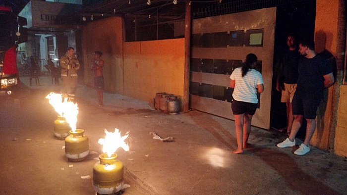 Os bombeiros determinaram a retirada de todos os civis da área de risco e iniciaram a vistoria. No local, constataram que não havia mais chamas ativas, mas botijões de gás P13 estavam liberando gás no ambiente. A equipe realizou a retirada imediata dos cilindros e os colocou em local ventilado. Em seguida, foi executado o rescaldo, para evitar reignição do fogo.