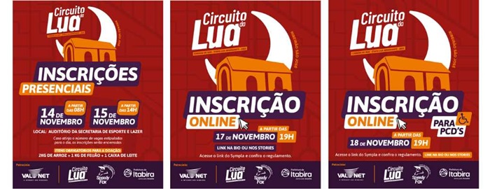 As inscrições on-line abrem no dia 17 de novembro, a partir das 19h, com o link divulgado na página oficial da SMEL no Instagram @sec.esporte_lazer_itabira.