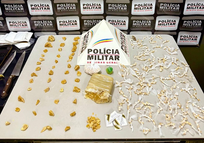Durante as buscas, foram encontrados meia barra, 490 pedras e uma porção grande de crack, uma bucha de maconha, caixas de lâminas de barbear, facas utilizadas no preparo, sacolas plásticas tipo “chup-chup” e seis aparelhos celulares de diferentes marcas e modelos.