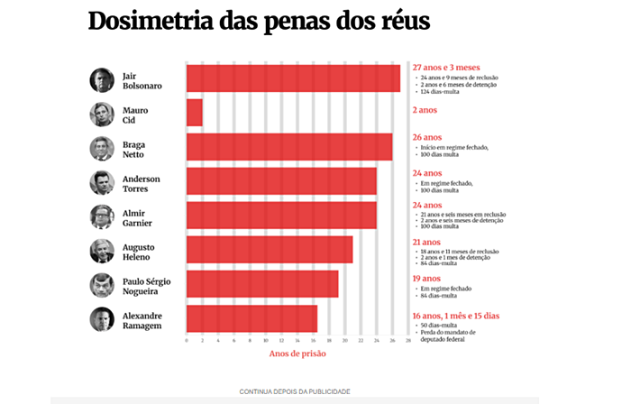 A análise dos embargos de declaração é mais um passo para que os condenados do chamado núcleo 1 cumpram suas penas. No caso de Bolsonaro, a condenação é de 27 anos e 3 meses.