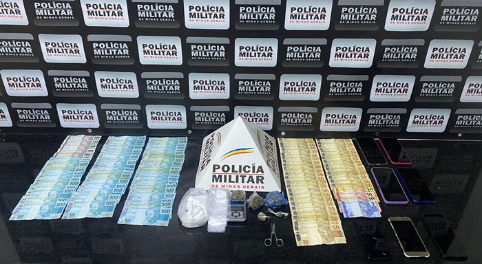 Entre os itens recolhidos estavam R$ 7.792,00 em dinheiro, uma balança de precisão, uma porção grande de cocaína, três tabletes médios de maconha, duas porções adicionais da mesma droga, sete aparelhos celulares, uma tesoura e diversos saquinhos plásticos utilizados para embalar entorpecentes.