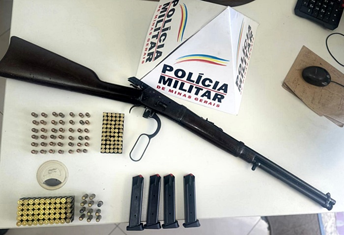 O homem informou não possuir registro ou autorização para a carabina nem para as munições de calibre .38 encontradas.