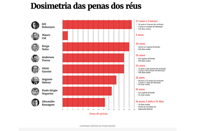 A Turma também analisou em plenário virtual os embargos dos outros condenados por trama golpista. As penas variam entre 16 e 27 anos. Todos votaram para rejeitar os embargos dos demais condenados do núcleo crucial que entraram com recurso.
