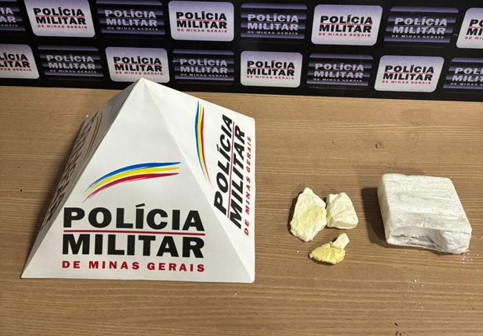 Durante as buscas, os militares vistoriaram um terreno baldio onde encontraram, escondida entre a vegetação, uma quantidade relevante de entorpecentes. Foram apreendidos um tablete de substância semelhante à cocaína e uma porção de pasta base.