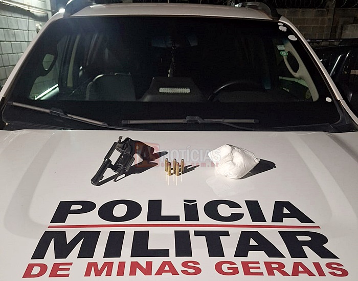 Minutos depois, uma denúncia anônima levou os militares até uma residência associada ao suspeito. Com autorização, foram feitas buscas no imóvel, onde foi encontrada uma arma de fogo, além de mais entorpecentes.