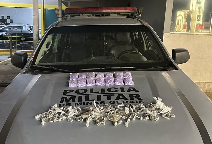 Durante a abordagem, os militares realizaram buscas e localizaram uma grande quantidade de entorpecentes. Ao todo, foram apreendidos 336 pinos de cocaína e 140 buchas de maconha.