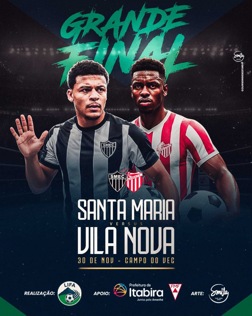 A final do Campeonato Amador – Getúlio Germano será disputada entre os times Santa Maria e Vila Nova, em um duelo que promete muita emoção. A entrada é gratuita, sem necessidade de retirada de ingressos.