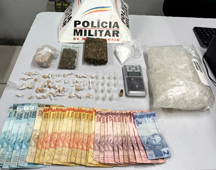 No quarto utilizado pelo suspeito, os policiais localizaram diversas porções de cocaína, crack e maconha, além de materiais usados para preparo e embalagem de drogas, uma balança de precisão, uma munição calibre 9mm e dinheiro.