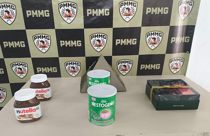 Além disso, foram apreendidas duas embalagens de suplemento alimentar e dois potes grandes de creme de avelã Nutella, todos sem nota fiscal e de procedência duvidosa.