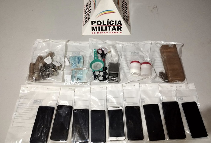 ESPERA FELIZ (MG) – A Polícia Militar recuperou 12 aparelhos celulares, duas fontes e um cabo de carregador durante uma ação policial que resultou na prisão de um jovem de 20 anos, na madrugada dessa quarta-feira, 17 de dezembro de 2025, no Centro de Espera Feliz.