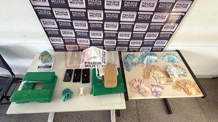 Durante a intervenção policial, as equipes militares obtiveram êxito na prisão dos dois suspeitos e na apreensão de diversos materiais ilícitos, entre eles R$ 8.680,00 em dinheiro, uma barra de crack, uma barra de pasta base de cocaína, uma porção de crack, uma pedra grande de crack, sete barras de maconha, uma porção também de maconha, três aparelhos celulares e uma balança de precisão.