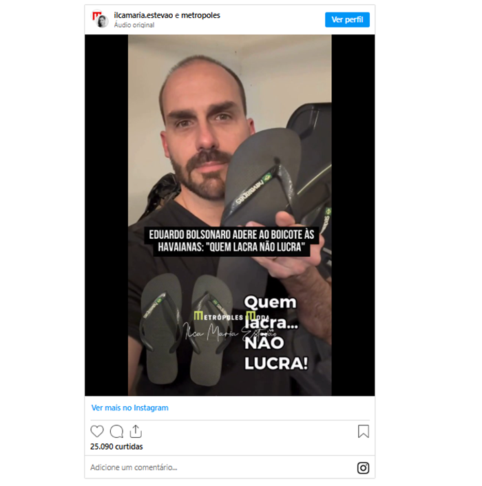 A repercussão foi intensa: nas redes sociais surgiram publicações de apoiadores que chegaram a destruir e a “passar a tesoura” em chinelos Havaianas como forma de protesto. O mesmo público logo sugeriu que outras marcas de sandálias fossem consumidas no lugar daquela que “todo mundo usa”.