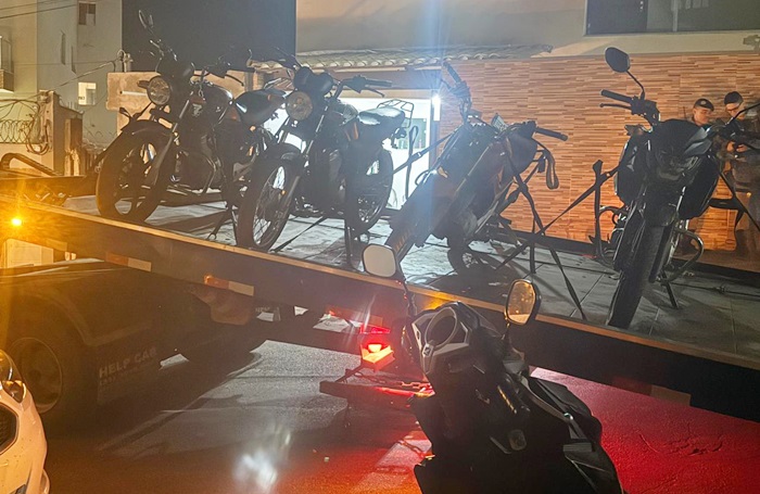 Diante das informações recebidas, foi montada uma operação de cerco e bloqueio nas principais vias de acesso ao bairro. No local, os militares constataram diversas motocicletas ligadas, produzindo alto ruído, muitas delas sem placas de identificação. No momento da abordagem, alguns condutores tentaram frustrar a ação policial, recolhendo os veículos para o interior de uma garagem.