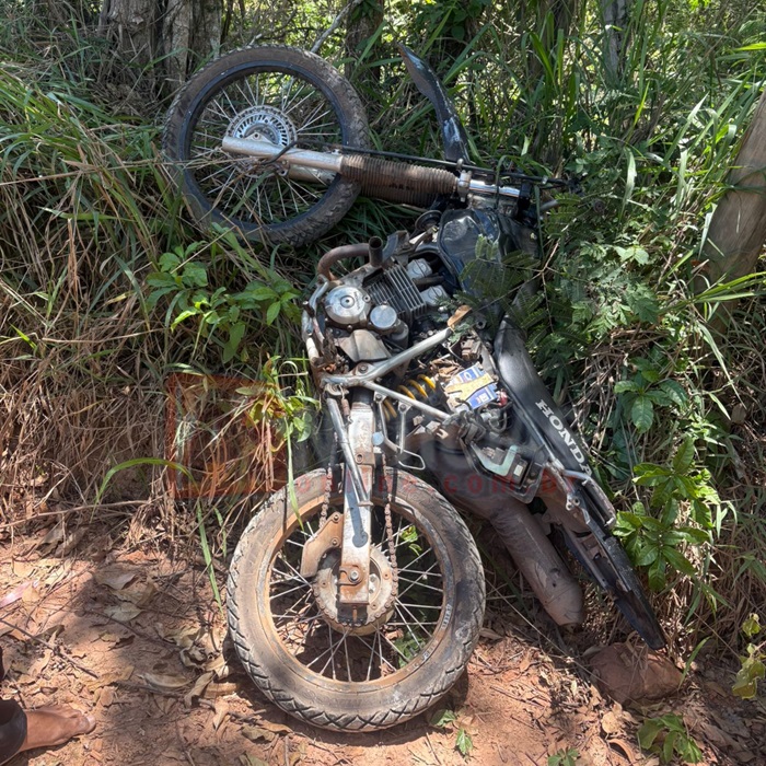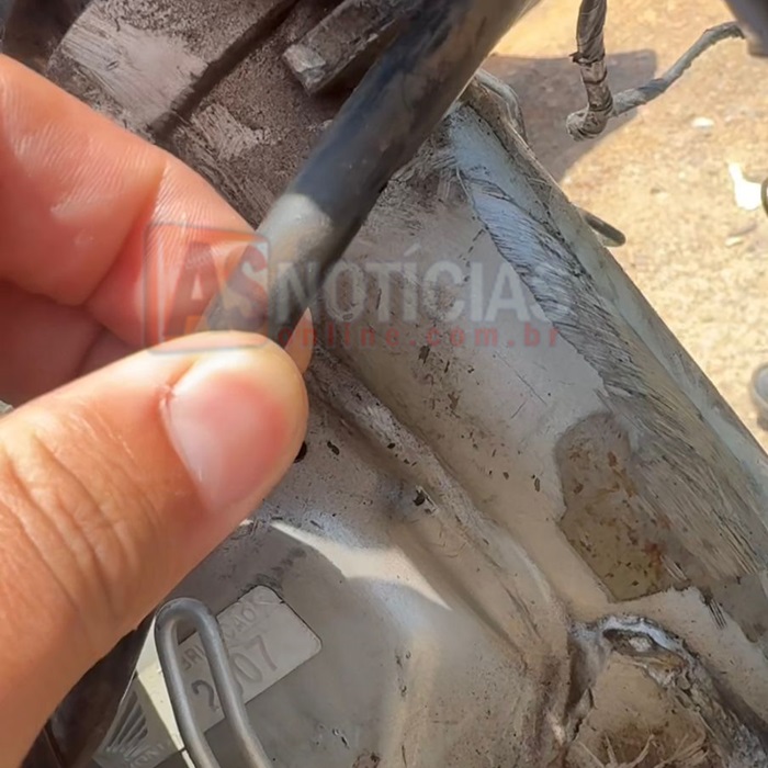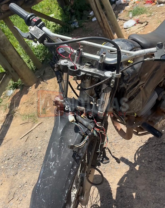 Diante do relato, os militares prestaram apoio e realizaram diligências, localizando a motocicleta em uma estrada vicinal nas proximidades da rodovia MG-434, próximo ao km 1. O veículo estava sem as carenagens e apresentava diversas avarias, possivelmente causadas pelo autor após o furto.