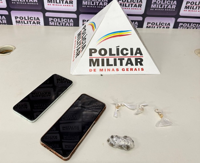 Durante a busca pessoal, foram localizadas substâncias entorpecentes e aparelhos de telefonia celular nas vestimentas do adolescente, que assumiu a prática do ato infracional análogo ao tráfico de drogas.