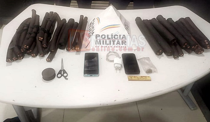 ITABIRA(MG)- Dois homens, de 23 e 33 anos, foram presos em flagrante na tarde desta segunda-feira, 12 de janeiro de 2026, por volta das 17h25, suspeitos de furtarem cabos de cobre na área da Mina do Cauê, em Itabira.