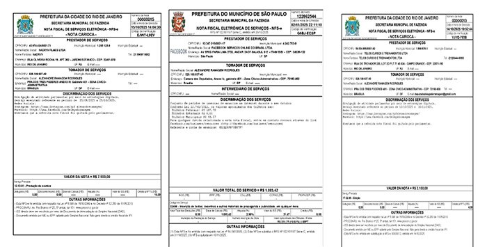 As datas são referentes a 14 e 15 de outubro e 2 de novembro. Veja as notas fiscais nas imagens abaixo: