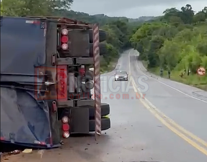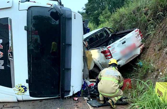 De acordo com as informações apuradas, a carreta seguia no sentido da BR-381 quando, por motivos ainda desconhecidos, tombou sobre a pista, permanecendo na contramão de direção. Durante o tombamento, a carga acabou atingindo uma caminhonete MMC L200 Triton, de cor branca, com placas de Belo Horizonte, que trafegava no sentido contrário no momento do acidente ficando pressionada contra o barranco as margens da pista.