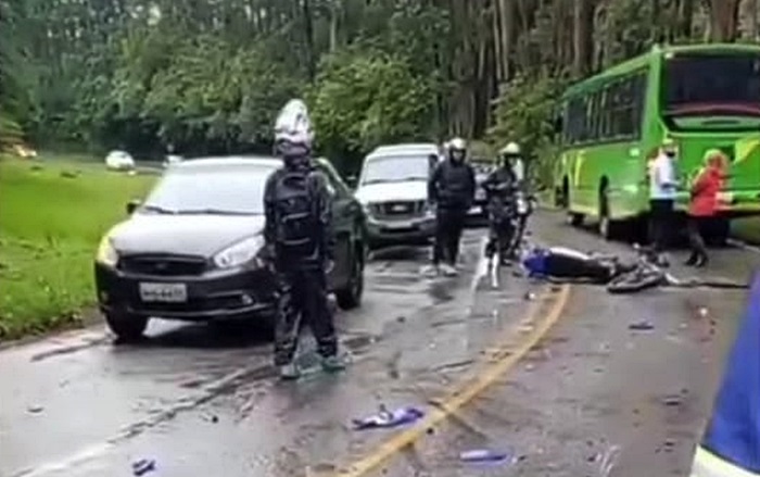 A vítima foi encontrada deitada lateralmente sobre o asfalto, queixando-se de fortes dores nas pernas. No local também estavam um ônibus que teria sido atingido pela motocicleta e um automóvel que não se envolveu diretamente no acidente, mas permaneceu na cena para prestar os primeiros auxílios.