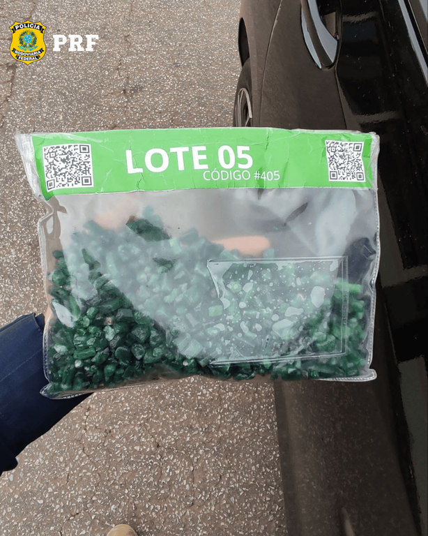Ao apresentarem o material, os ocupantes exibiram uma nota fiscal e um laudo técnico emitido por um gemólogo. No entanto, os policiais constataram divergência entre a quantidade apresentada pelos homens e o valor descritos na nota fiscal, assim como as informações constantes no laudo técnico, o que levantou suspeita quanto à regularidade da mercadoria.