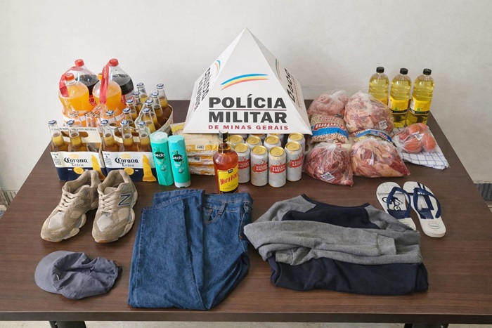 Entre os materiais recuperados estão carnes, cervejas, pães de alho, whisky, shampoo, condicionador, refrigerantes, óleo de soja, pano de prato, tomates, chinelos, além das roupas utilizadas durante o crime.