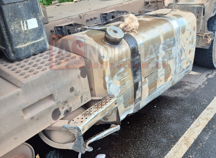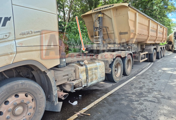 O condutor da carreta, um Volvo FH 460, de cor branca, placas de Ipatinga, de 38 anos, relatou que seguia no sentido BR-381 quando sentiu o forte impacto na lateral do caminhão.