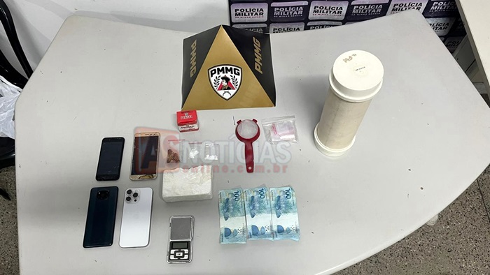 Em continuidade às diligências, as equipes se deslocaram até a residência onde o autor estava hospedado. No local, foram encontradas outras porções de entorpecentes, uma balança de precisão, aparelhos celulares e materiais relacionados ao tráfico de drogas. A jovem de 19 anos que se encontrava na residência também foi conduzida.