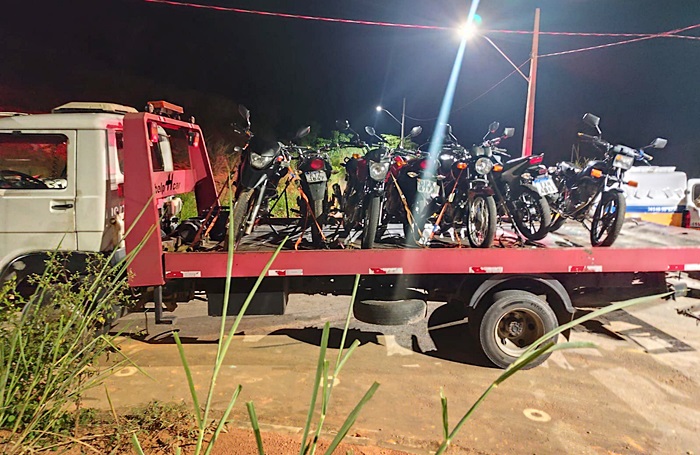 Ao todo, cinco adultos foram presos e dois menores apreendidos. As sete motocicletas foram removidas para pátio credenciado. No caso dos adolescentes, os responsáveis legais acompanharam a ocorrência.