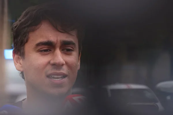 Após a visita, Nikolas falou com a imprensa e reagiu a recentes ataques do ex-deputado federal Eduardo Bolsonaro (PL), “autoexilado” nos EUA, onde atua por retaliações comerciais e políticas contra autoridades brasileiras.