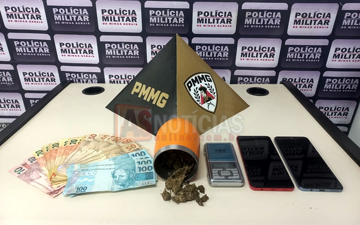 Na ação, os militares apreenderam dois aparelhos celulares de procedência duvidosa, um copo contendo maconha fragmentada, uma balança de precisão e R$ 1.260,00 reais em dinheiro trocado.