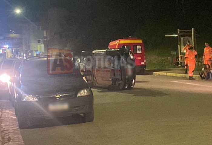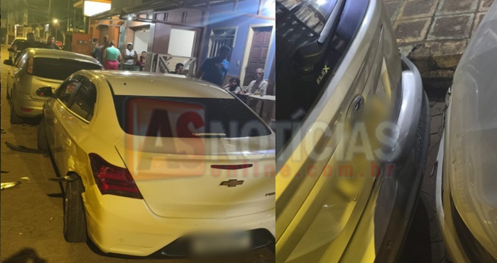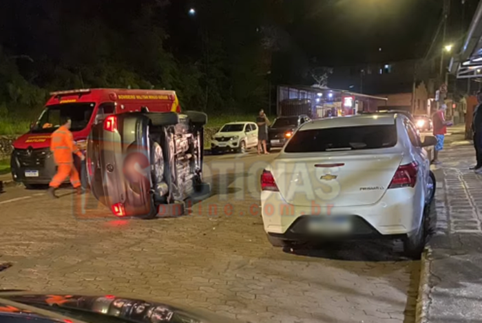 Os proprietários dos veículos atingidos informaram que estavam no estabelecimento comercial próximo quando ouviram o barulho da colisão e visualizaram o veículo tombado.