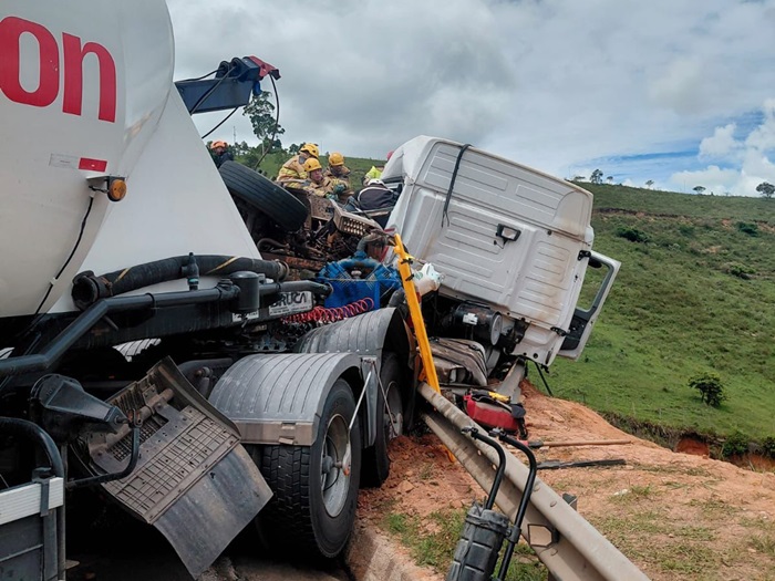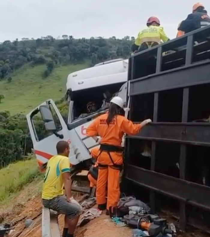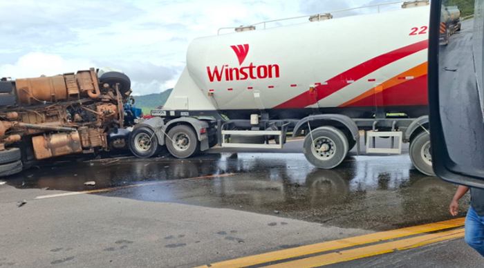Um grave acidente envolvendo duas carretas e um caminhão foi registrado na manhã deste sábado, 7 de março de 2026, no km 356 da BR-381, no trecho conhecido como Corte de Pedras, em João Monlevade. A colisão deixou feridos e provocou a interdição total da rodovia.