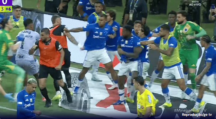 A final entre Cruzeiro e Atlético, nesse domingo (8), ficou marcada por cenas de uma briga generalizada na reta final da partida. O time celeste venceu o alvinegro por 1 a 0, com gol de Kaio Jorge, para conquistar o título do Campeonato Mineiro.
