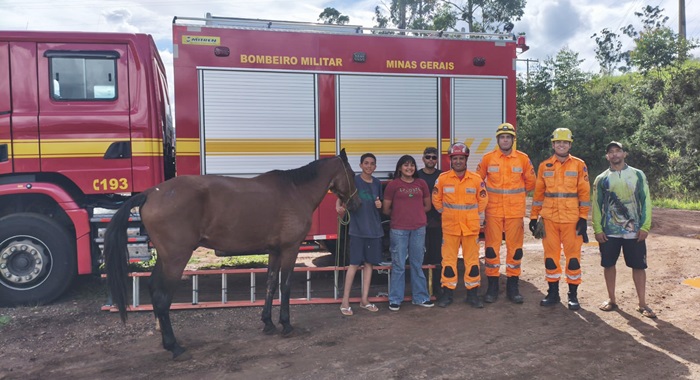 ITABIRA (MG) – Militares do 6° Pelotão do Corpo de Bombeiros Militar de Itabira realizou, nesta quarta-feira, 12 de março de 2026, o salvamento de um cavalo que se encontrava em situação de risco na Avenida Mandrágora, no bairro Bálsamo, nas proximidades da barragem do Rio de Peixe, em Itabira.