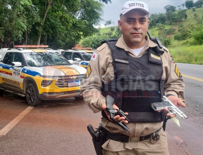SÃO GONÇALO DO RIO ABAIXO(MG)- Na manhã desta quinta-feira, 19 de março de 2026, a Polícia Militar Rodoviária (PMRv) tirou de circulação duas armas de fogo ilegais durante operação de combate ao crime e fiscalização de trânsito realizada na rodovia MG-434, na altura do km 11, próximo ao trevo de acesso ao distrito de Ipoema, na localidade dos Bambas em São Gonçalo do Rio Abaixo.