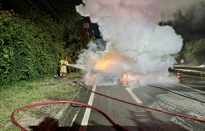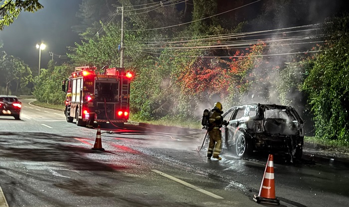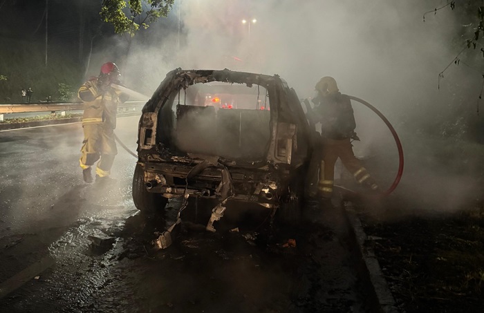 IPATINGA (MG)- Um veículo ficou completamente destruído após um incêndio registrado na noite desta sexta-feira, 27 de março de 2026, por volta das 19h25, na Avenida Presidente Tancredo de Almeida Neves, no trecho conhecido como Morro da Usipa, em Ipatinga, sentido ao município de Coronel Fabriciano.
