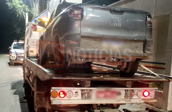 Durante patrulhamento, os militares abordaram um veículo Fiat Strada e, ao realizarem a fiscalização, constataram indícios de adulteração nos sinais identificadores. Após verificação detalhada, foi confirmado que o automóvel original possuía registro de furto/roubo, estando o veículo abordado circulando com dados de outro de características semelhantes.